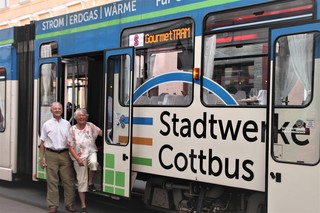 Aus allen richtigen Einsendungen zur Preisfrage in der letzten "Stadtwerke Cottbus direkt" - Ausgabe wurde Familie Langwagen aus Cottbus gezogen. Sie konnte sich auf eine außergewöhnliche Tour mit der Stadtwerke- Straßenbahn durch Cottbus freuen. Neben einem 5- Gänge- Menü während der vierstündigen Fahrt gab es viele kulturelle Überraschungen.