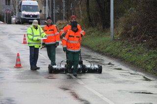 In der Sachsendorfer Straße läuft in dieser Woche die Sondierungen nach Kampfmitteln durch die Firma Röhll Munitionsbergung GmbH aus Frankfurt/Oder. Hier werden wir 2017 zwei Mittelspannungskabelsysteme sowie eine Hochdruckgasleitung auf einer Länge von 500 m von der Vetschauer Straße (Wendeschleife der Straßenbahnlinie 1) bis zur Abzweigung „An der Werkstatt"erneuern.